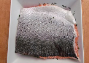 - (day 4) after 4 (or 3) days, rinse the salmon under running water, pad dry, then cover flesh side with another 1/4 cup of sliced dill (optional)