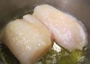 - cut a 2 lbs cod fillet into 3 pieces – belly flap, tail part and front part (belly for Bella)