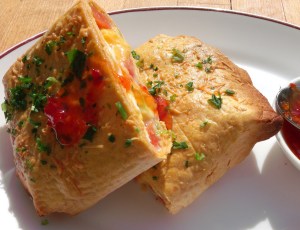Of course, as with most of the food I publish on my blog, I recommend using this dish as an inspiration for your very own variations of a baked wrap. I have prepared them with seafood, ground meat, chicken, veggies, with or without cheese, with or without eggs, etc. ( one of my favorites is tomato, onion, sauteed spinach, and brie). Also, although I have this usually for breakfast, it makes a great snack or meal any time during the day or evening.