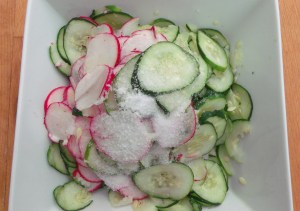 - peel and finely slice 3 lbs waxy potatoes,