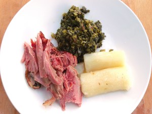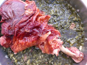 - transfer meat to collard greens (see recipe-link on this page), simmer another 20 minutes